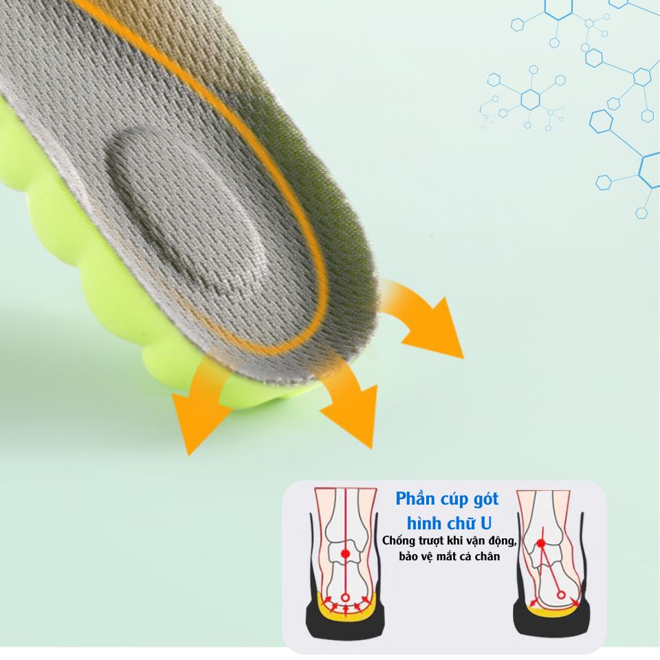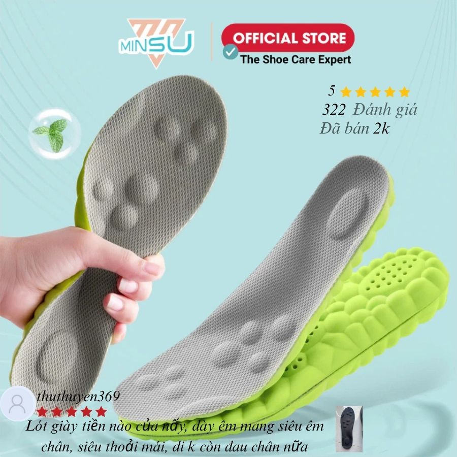 Miếng Lót Giày 4D Bảo vệ Chân MINSU M2352 Chống Trơn Trượt, Lưu Thông Khí Huyết, Đệm Êm Chân, Thấm Hút, Khử Mùi Nam Nữ
