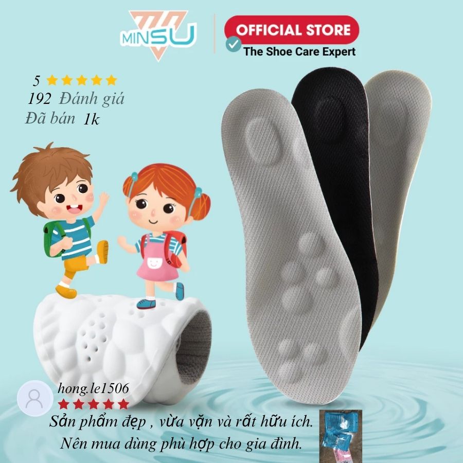 Miếng Lót Giày Trẻ Em 4D Bảo vệ Chân MINSU M2305 Đệm Êm Chân, Thấm Hút, Khử Mùi Giúp Trẻ Vận Động Thoải Mái Cả Ngày